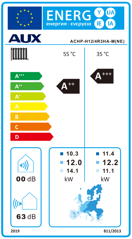 Εποχιακή Ενεργειακή Κλάση Θέρμανσης (μεσαία ζώνη) | Έξοδος Νερού 35°C / 55°C: A+++ / A++