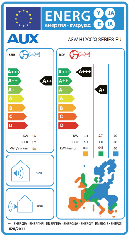 SEER: 6,2, SCOP Μ.Ε.: 4,0