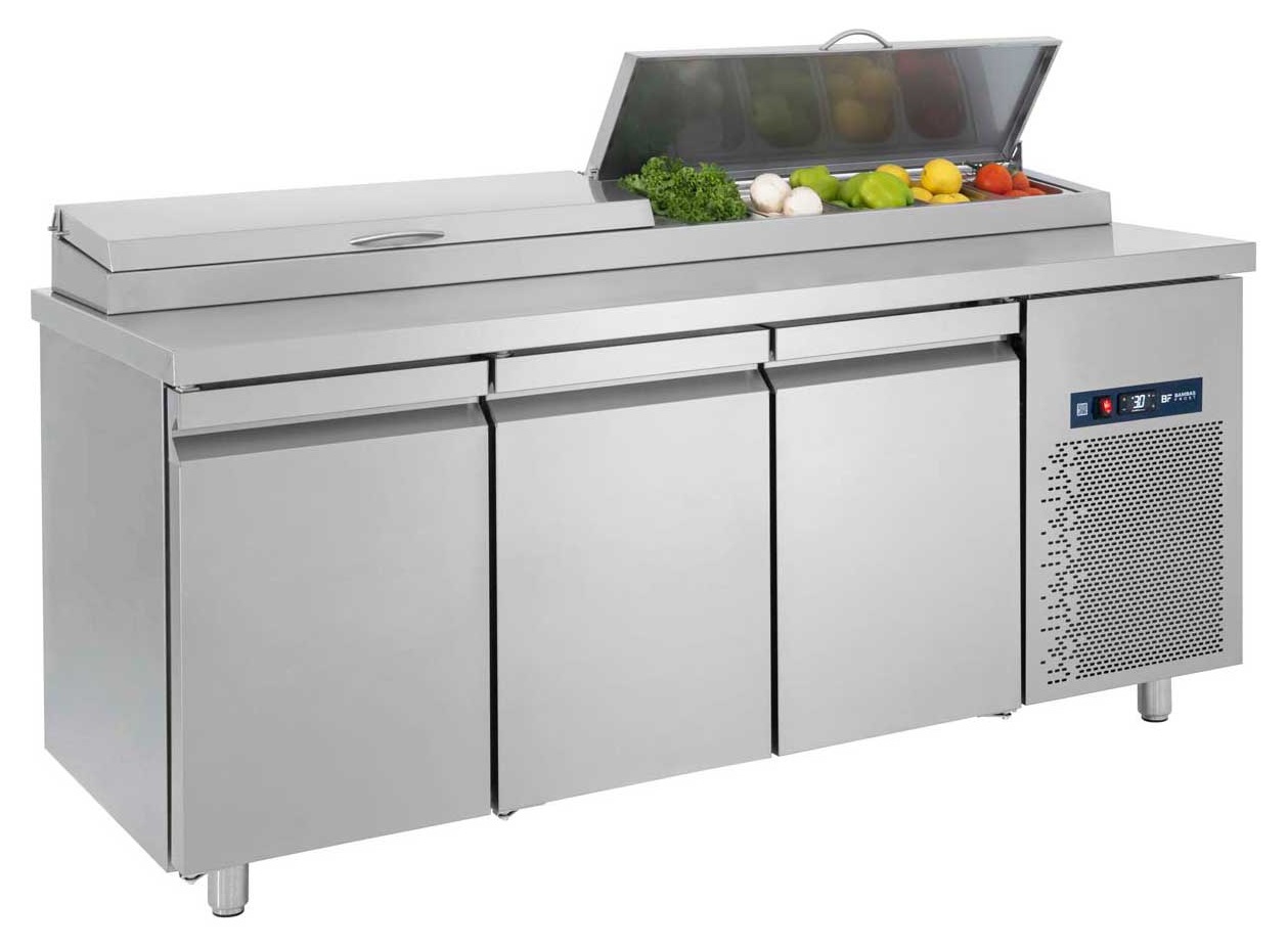BAMBAS PIMG 185 Ψυγείο Σαλατών χωρίς Βιτρίνα με 3 Πόρτες GN, για 10 Λεκανάκια GN 1/4, 532 lt