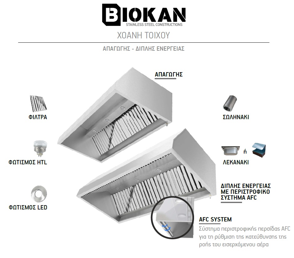 BIOKAN KT Χοάνη Τοίχου - Απαγωγής, με Φίλτρα