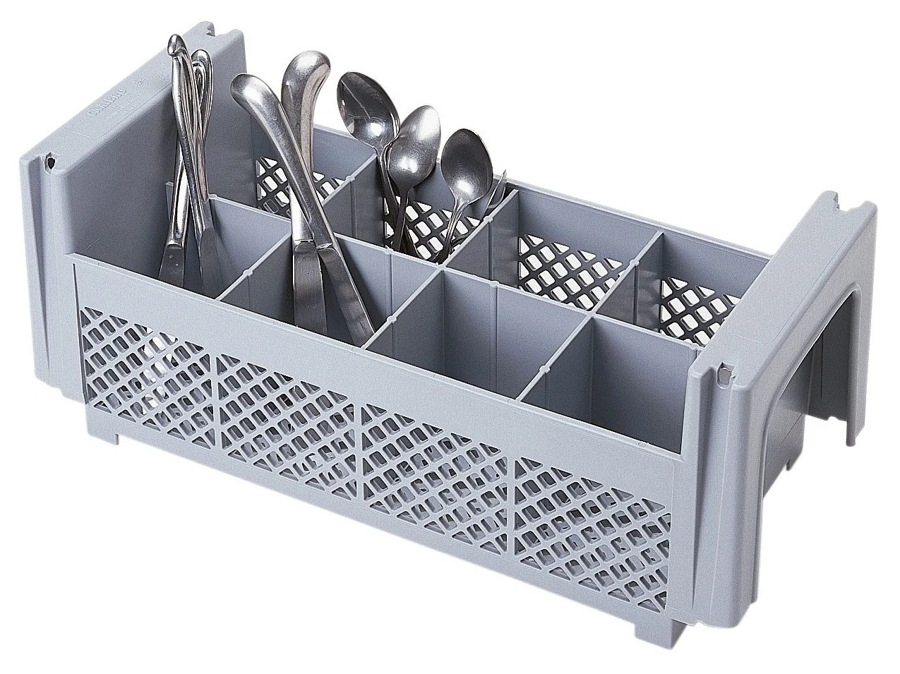 Καλάθι μαχαιροπήρουνων 8 θέσεων σε γκρι χρώμα Camrack. Πλένεται εύκολα στο πλυντήριο κι επιτρέπει στο νερό να αποβάλλεται πλήρως χάρη στον ειδικό σχεδιασμό του. Η Cambro σας βοηθάει να βάλετε τάξη στην επιχείρησή σας με αξιόπιστα προϊόντα αποθήκευσης και οργάνωσης.