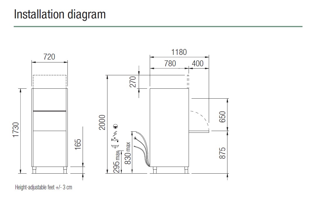 Εξωτερικές Διαστάσεις (Π x Β x Υ): 720x780x1730 mm
