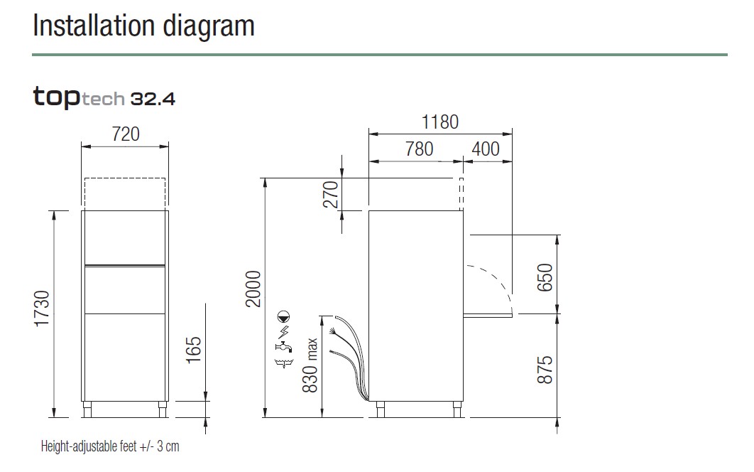 TopTech COLGED 32-23D.4 TopTech 32.4 Utensil Washer Πλυντήριο Σκευών 10,5 kW, Τριφασικό Διπλού Τοιχώματος, με Πιεστικό Boiler, Αντλία Απορρυπαντικού και Αντλία Αποχέτευσης, 37 lt