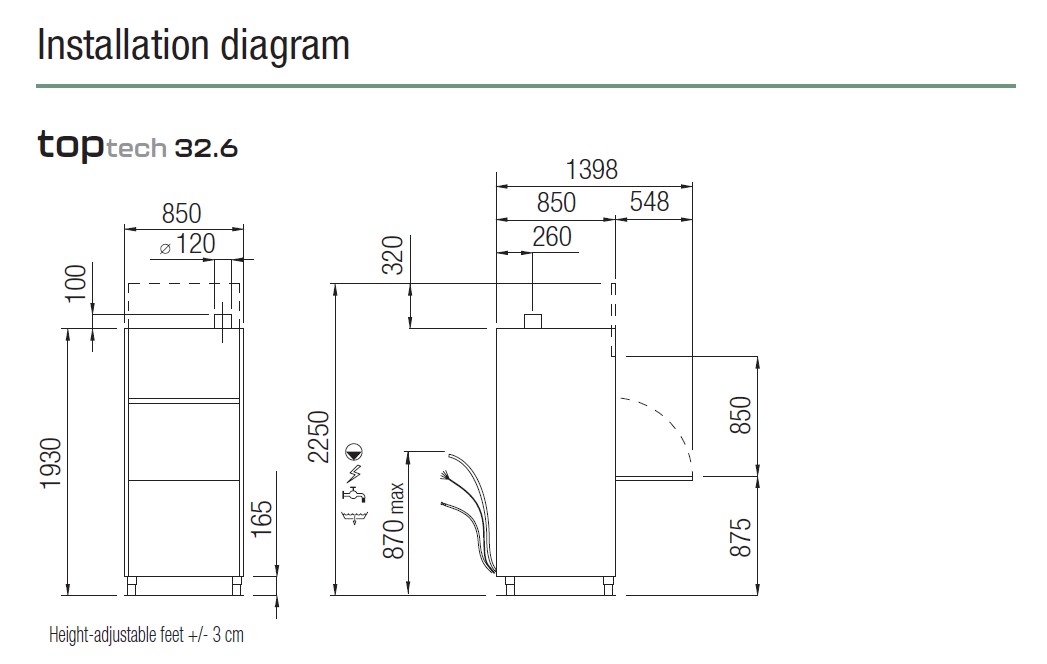 TopTech COLGED 32-23D.6 TopTech 32.6 Utensil Washer Πλυντήριο Σκευών 18,7 kW, Τριφασικό Διπλού Τοιχώματος, με Πιεστικό Boiler, Αντλία Απορρυπαντικού και Αντλία Αποχέτευσης, 68 lt