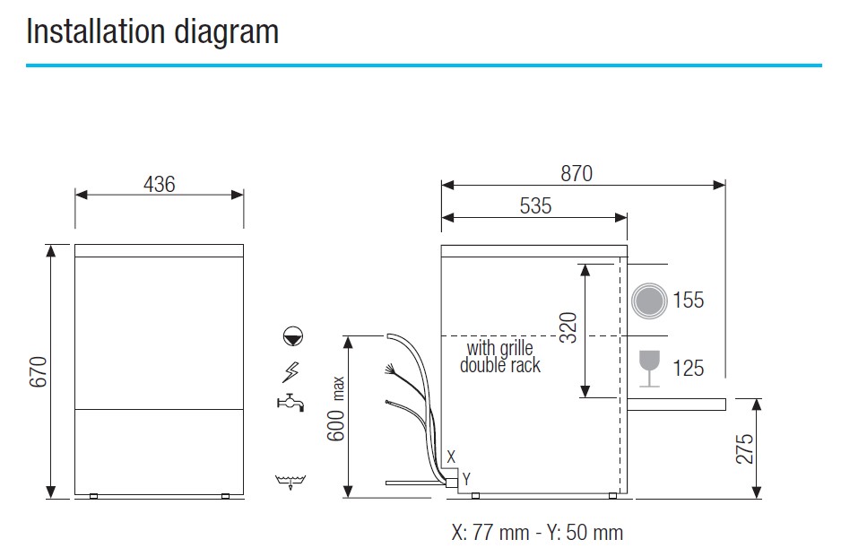 IsyTech COLGED 34-12D IsyTech34 Glasswasher Πλυντήριο Ποτηριών 3,5 kW, Μονοφασικό Διπλού Τοιχώματος, με Πιεστικό Boiler, Αντλία Απορρυπαντικού και Αντλία Αποχέτευσης, 8 lt