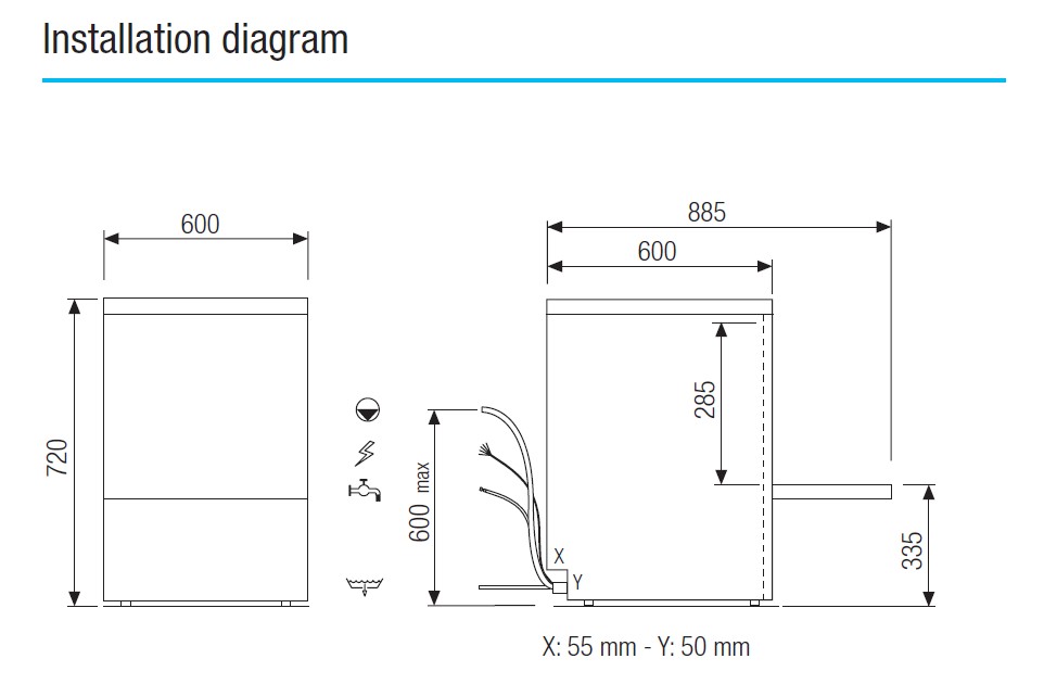 Εξωτερικές Διαστάσεις (Π x Β x Υ): 600x600x720 mm