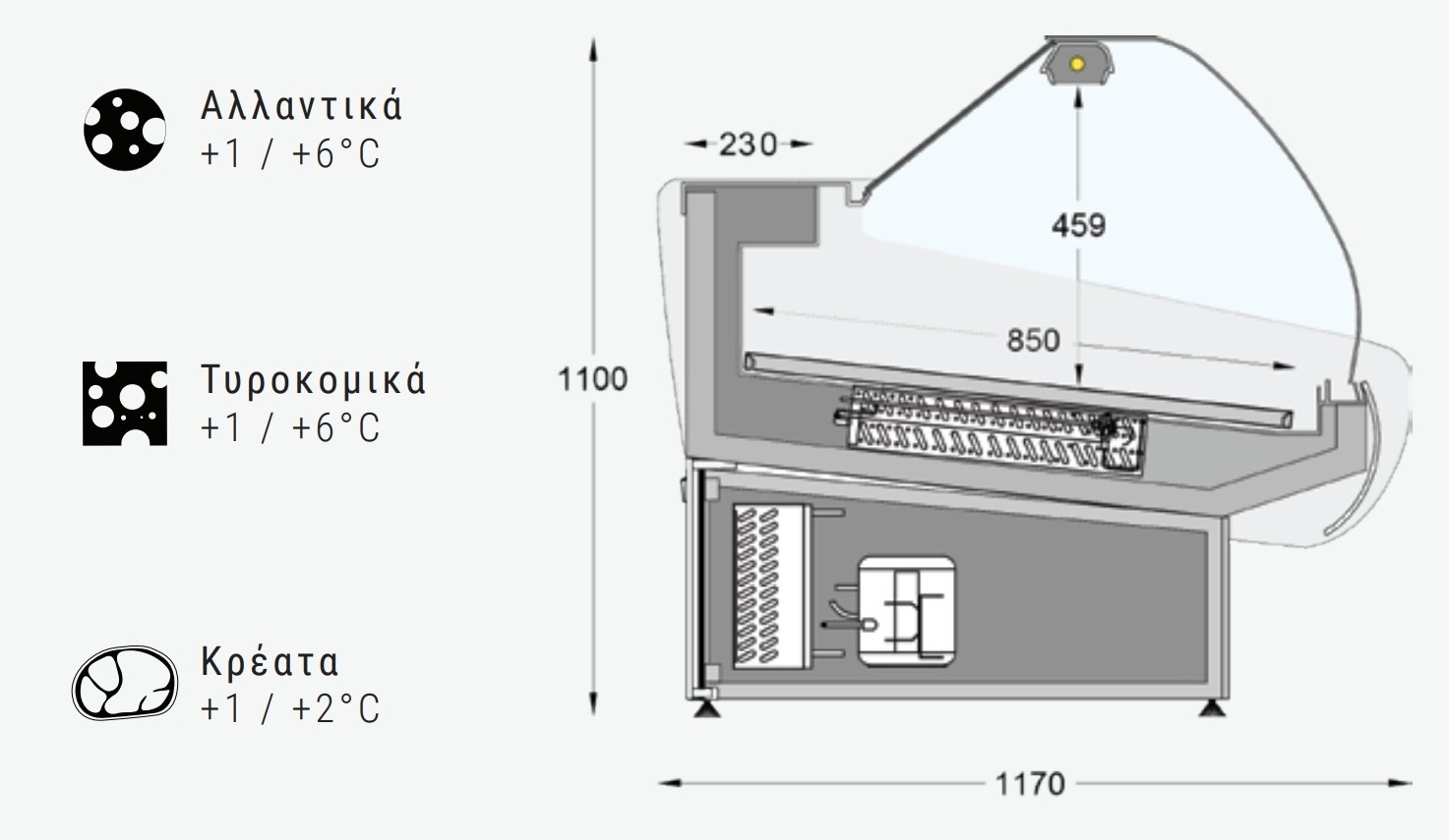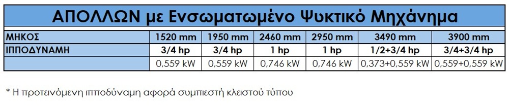 Βιτρίνα αλλαντικών, τυροκομικών ή κρεάτων ΑΠΟΛΛΩΝ με ενσωματωμένο ή χωρίς ψυκτικό μηχάνημα, και μεγάλο ωφέλιμο βάθος βιτρίνας 860mm.