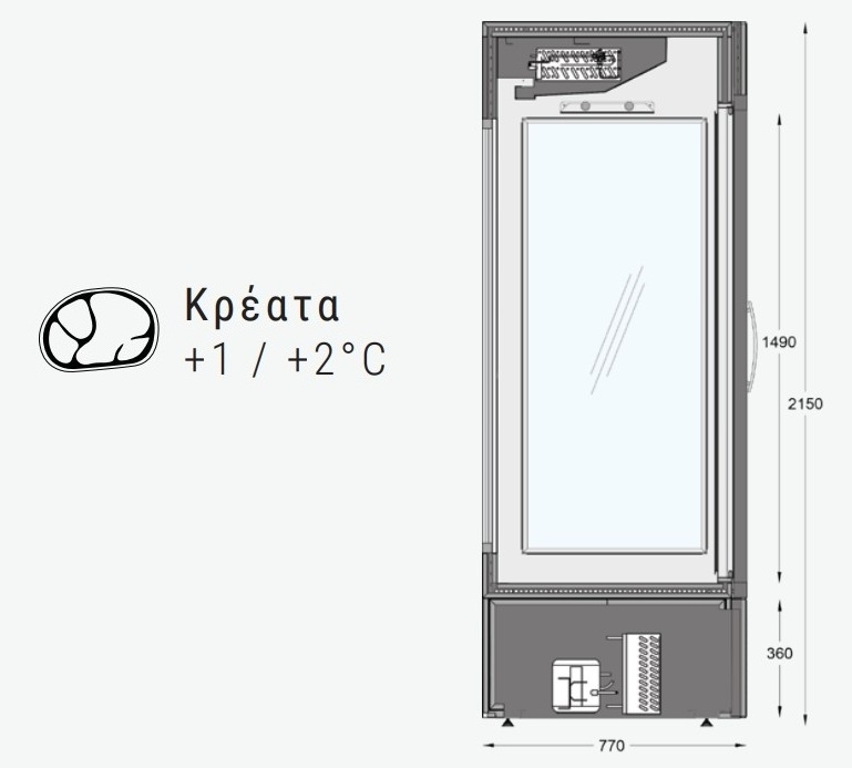 • Μόνωση οικολογικής πολυουρεθάνης • Αυτόματη απόψυξη • Με μία ή δύο γυάλινες πόρτες συρόμενες ή ανοιγόμενες • 220V Μονοφασικό • Επιλογή εξωτερικού χρώματος • Με μπάρες για τσιγγέλια • Δυνατότητα τοποθέτησης ραφιών με επιπλέον χρέωση • Μήκος (mm): 950, 1600 • Βάθος (mm): 770 • Ύψος (mm): 2150 • 1-6°C