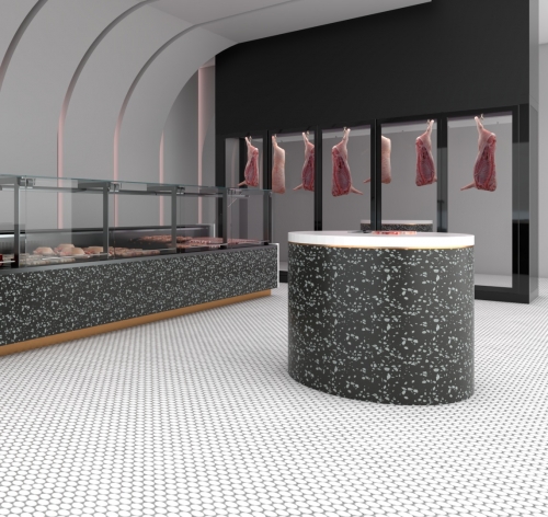 Η πανοραμική βιτρίνα ΑΤΛΑΣ μπορεί να εγκατασταθεί εύκολα ανεξάρτητη ή εντοιχιζόμενη σε έναν χώρο με τον μοντέρνο και μίνιμαλ σχεδιασμό της, και είναι ιδανική για κρέμασμα κρεάτων παντός τύπου.