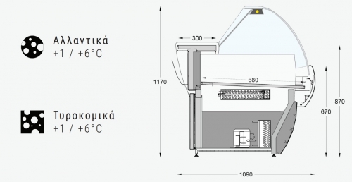 DOMI ΔΙΑΣ Βιτρίνα Αλλαντικών και Τυροκομικών με Ενσωματωμένη Τυριέρα Φυσικής Κυκλοφορίας