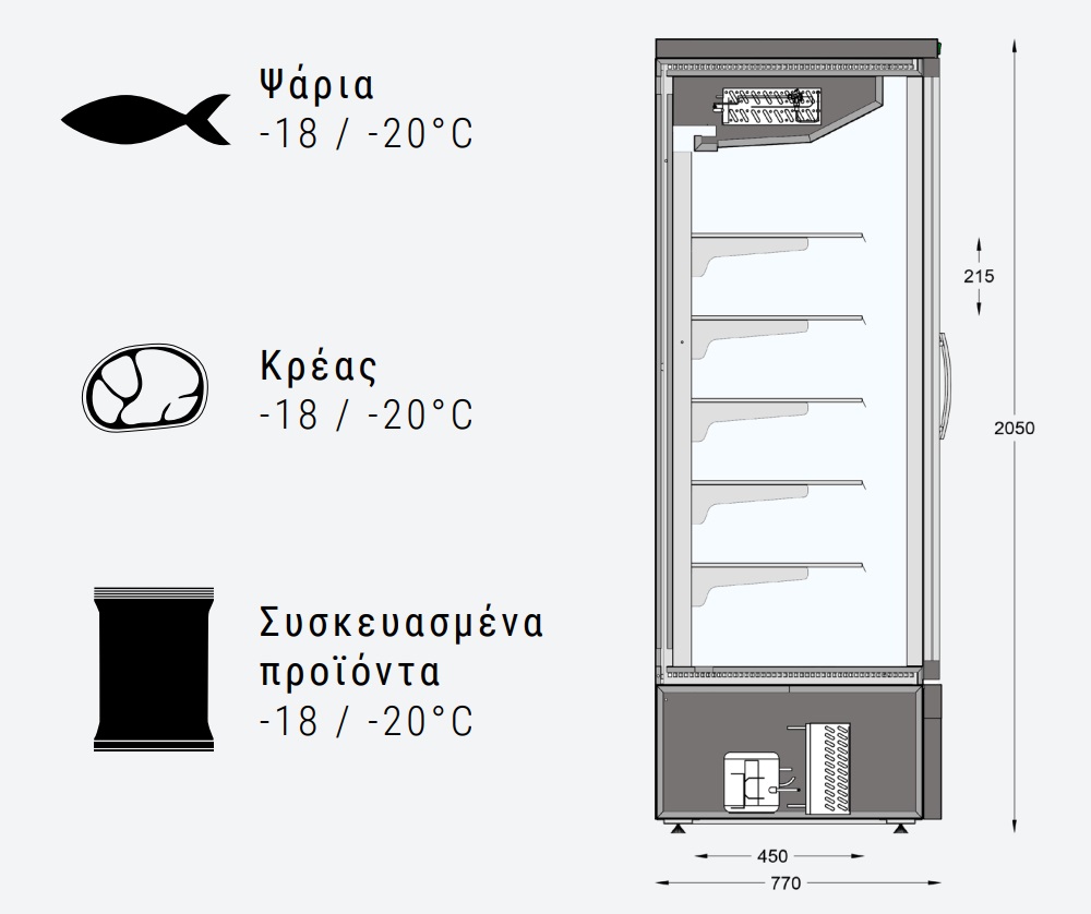Θερμοκρασιακό Εύρος: -18°C έως -20°C