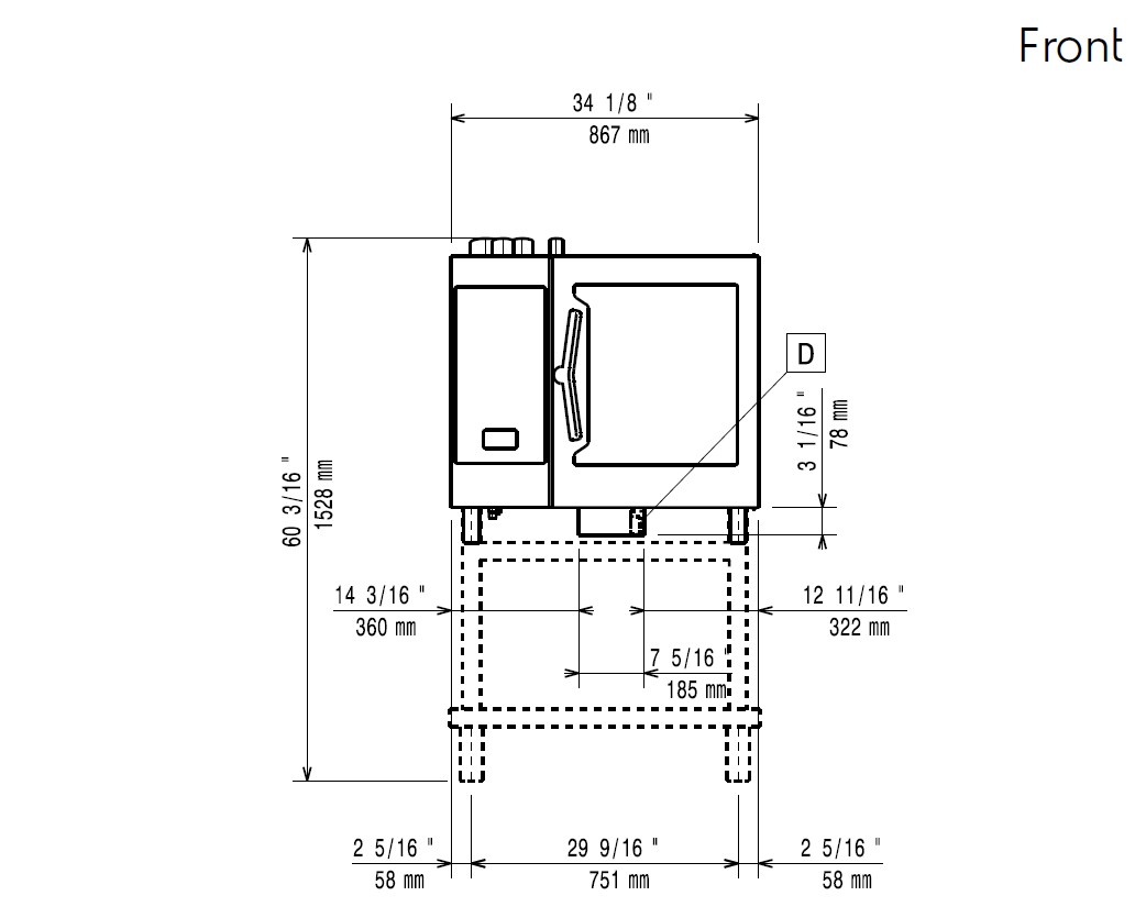 Συμπεριλαμβάνονται: αισθητήρας θερμοκρασίας πυρήνα με έναν αισθητήρα και 1 σχάρα GN1/1, απόσταση 67 mm