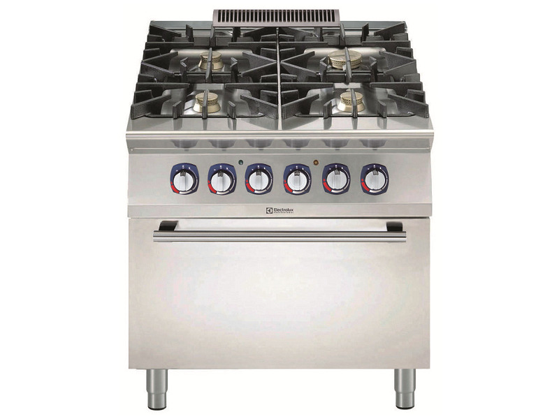 Κουζίνα Αερίου με 4 Εστίες Αερίου (1x10 kW, 3x 6kW) σε Ηλεκτρικό Φούρνο (6 kW)