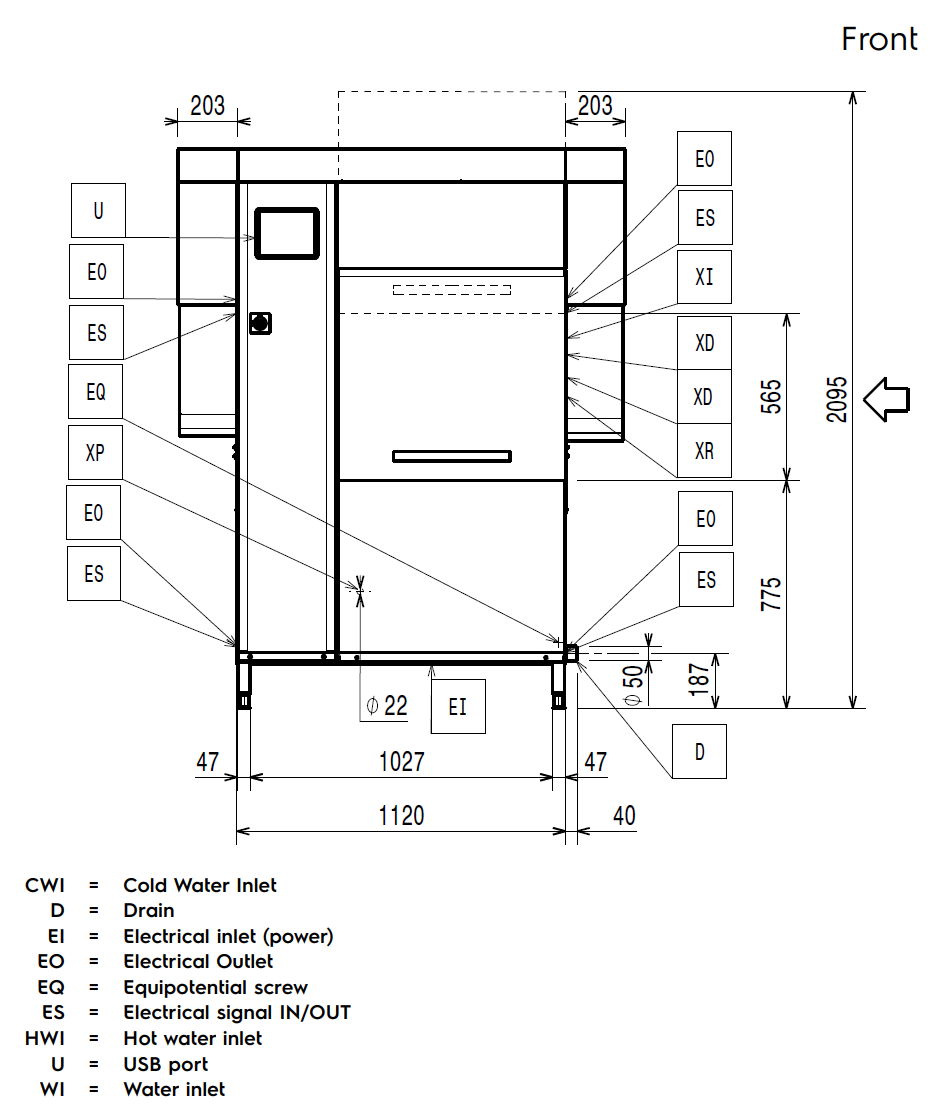 Electrolux 535109 Rack-Type Πλυντήριο 41,1kW, με Διπλό Ξέπλυμα, Συσκευή Εξοικονόμησης Ενέργειας, 200r/h Αντιστρέψιμο
