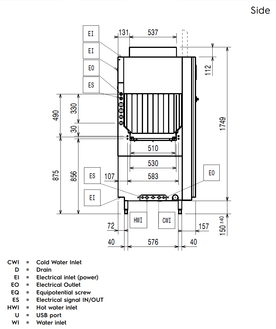 Μέγεθος σωλήνα Ζεστού Νερού Εισόδου: G 3/4"