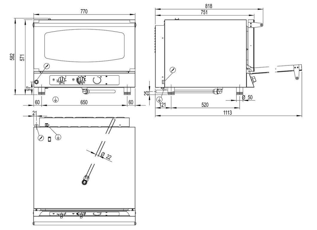 Θέρμανση με ανεμιστήρα. ` Πόρτα με διπλό τζάμι και χειρολαβή για μεγαλύτερη ευκολία στη χρήση. ` Σφραγίδα σιλικόνης στο πλαίσιο της πόρτας για μέγιστη στεγανότητα και για να αποτρέπεται κάθε πτώση της θερμοκρασίας. ` Θάλαμος μαγειρέματος με στρογγυλεμένες γωνίες για να συμμορφώνεται με τα πρότυπα υγιεινής και να διευκολύνει τον καθαρισμό. ` Σταθερά ράφια, αφαιρούμενα για καθαρισμό, συμβατά με GN 1/1 και 600x400. ` Θωρακισμένα θερμαντικά στοιχεία. ` Ανεμιστήρας σε συνδυασμό με εκτροπέα για βελτιωμένη κυκλοφορία της ροής του αέρα . ` Αντιστροφή περιστροφής του ανεμιστήρα για βέλτιστη ομοιομορφία μαγειρέματος. ` Ρυθμιζόμενος χρονοδιακόπτης από 0 έως 120 λεπτά ή άπειρη ρύθμιση.