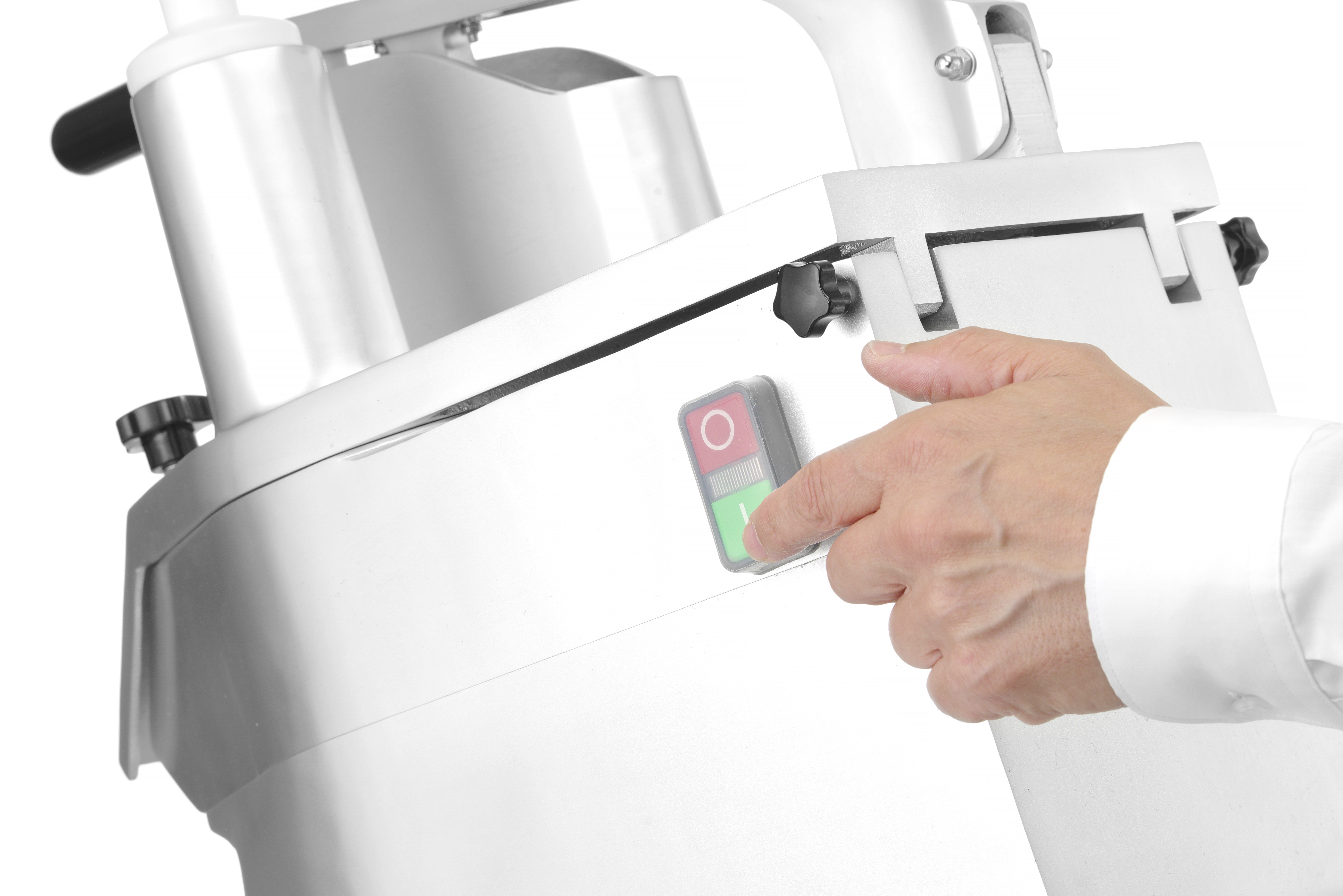 Κόφτης λαχανικών PROFI LINE. Κατάλληλος για κοπή μεγάλων ποσοτήτων λαχανικών. Περιέχει 5 διαφορετικούς δίσκους για διαφορετικά αποτελέσματα κοπής: φέτες 2 και 4mm και τρίμματα 3, 5 και 7mm. Μεγάλο στόμιο τροφοδοσίας με μοχλό για να χωράνε μεγάλα κομμάτια. Μικρό στόμιο με πίεστρο για μικρότερα κομμάτια. Περίβλημα από χυτό αλουμίνιο. 2 συστήματα ασφαλείας: πρώτο - βίδα που κλειδώνει το καπάκι, δεύτερο - ηλεκτρομαγνητικός αισθητήρας (το άνοιγμα του καπακιού σβήνει τη μηχανή). Ταχύτητα: 295 rpm. Βάρος: 24 kg