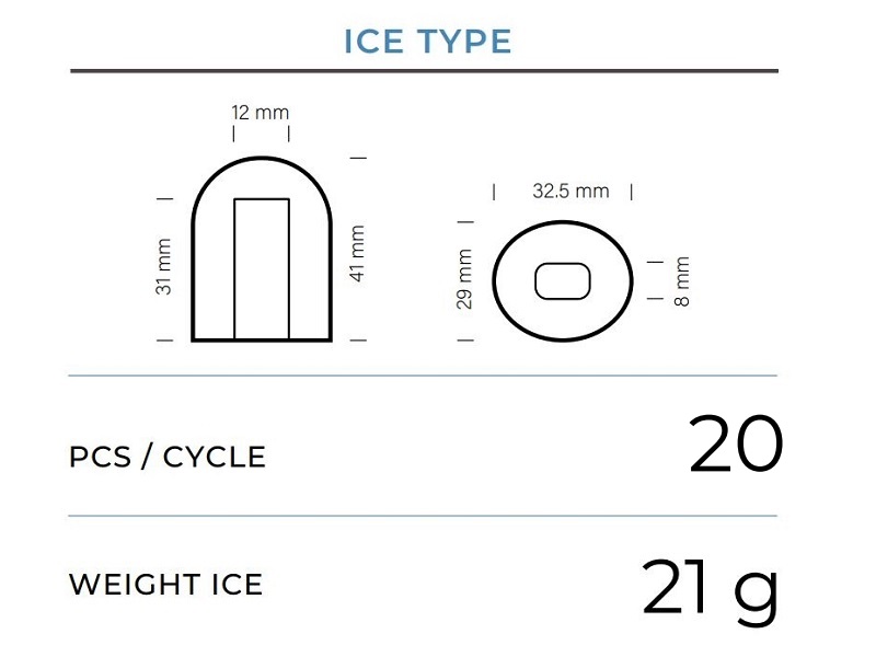 • Το μηχάνημα είναι σχεδιασμένο για να παράγει συμπαγή παγάκια, ιδανικά για ποτά και κοκτέιλ