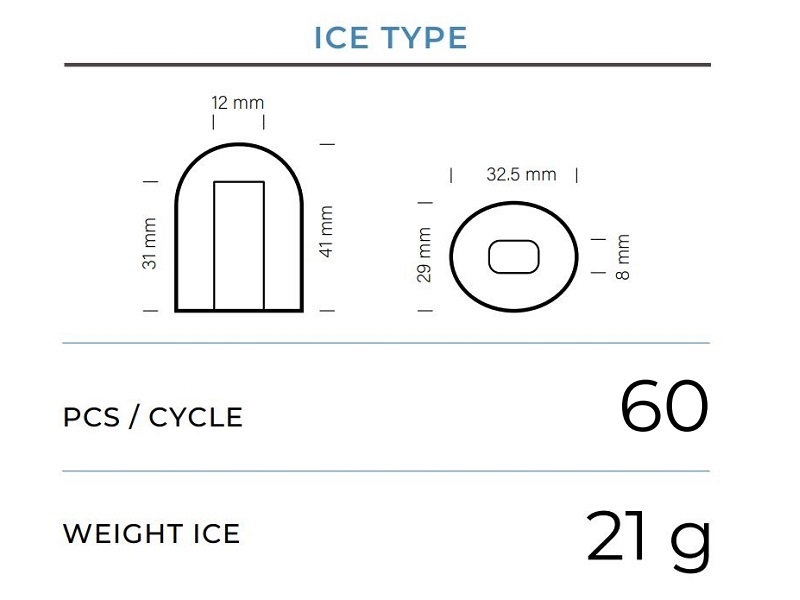 • Το μηχάνημα είναι σχεδιασμένο να παράγει κοίλους κύβους πάγου, οι οποίοι είναι ιδανικοί για ποτά και κοκτέιλ