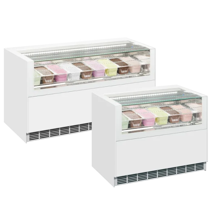 Παρουσιάζουμε το OneShow της ISA, μια σειρά προβολής παγωτού υψηλής ποιότητας με μοντέρνο, εντυπωσιακό σχεδιασμό. Η καθαρή, βελτιωμένη εμφάνισή της διαθέτει ένα εσωτερικό από ανοξείδωτο ατσάλι με καθρέφτη και τραγανές λευκές φωτεινές λωρίδες LED τόσο στο μπροστινό όσο και στο πίσω μέρος, δημιουργώντας μια πραγματικά εντυπωσιακή βιτρίνα. Το επίπεδο γυάλινο καπάκι είναι υδραυλικό, παρέχοντας εύκολη πρόσβαση στο παγωτό για εύκολο σερβίρισμα. Είτε χρησιμοποιείται ως αυτόνομη μονάδα είτε ενσωματώνεται σε έναν πάγκο, το μοντέλο Free προσφέρει μεγάλη ευελιξία. Το χαμηλό μπροστινό γυαλί συμπληρώνει τα διαφανή ταψιά Napoli, με αποτέλεσμα μια πραγματικά εξαιρετική παρουσίαση.