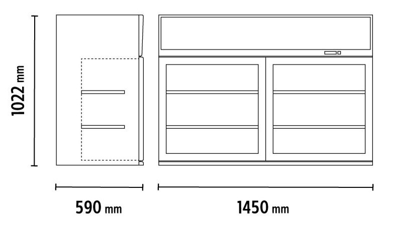 ALASKA Klimaitalia ALASKA TOP 145 Επιτοίχια Βιτρίνα Κατάψυξης με 2 Ανοιγόμενες Πόρτες, 373lt