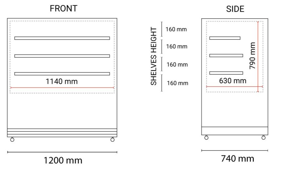 Εξωτερικές Διαστάσεις (Π x Β x Υ): 1570x340x450 mm