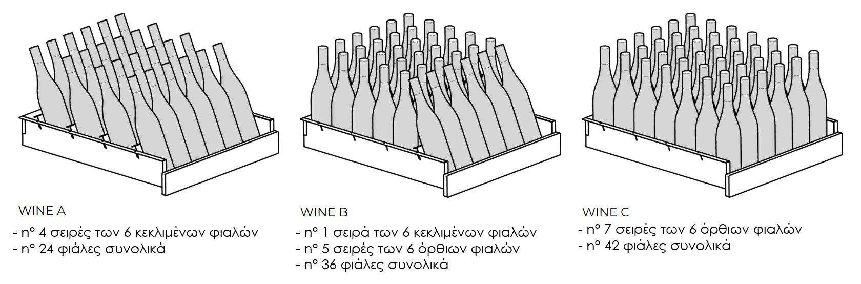 Ωφέλιμη Χωρητικότητα: 168 φιάλες max, 625 lt