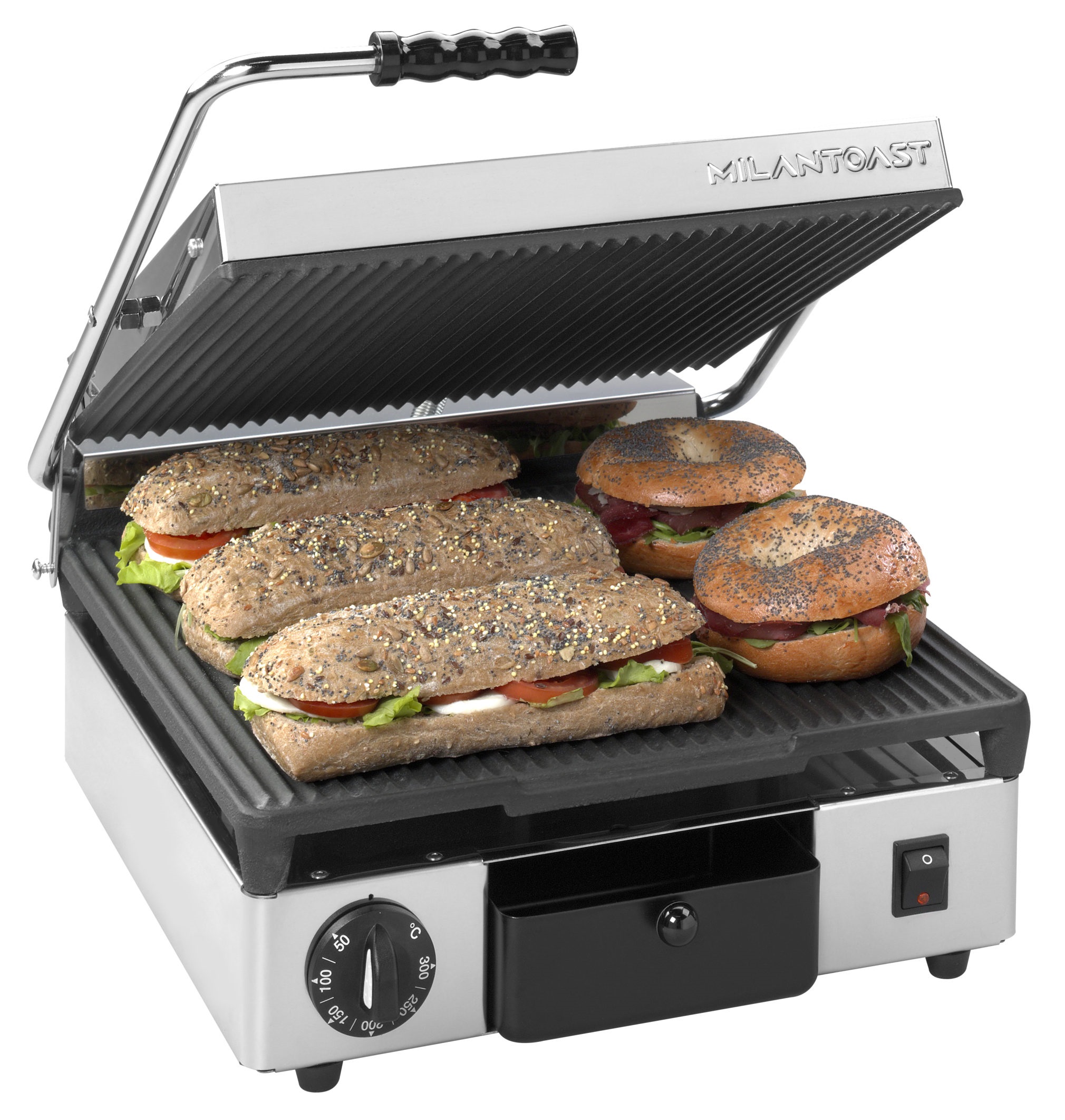 Η τοστιέρα 16020 της Milantoast είναι η ιδανική επιλογή για εστιατόρια και καφετέριες καθώς είναι πολύ εύκολη στη χρήση με την αυτοεξισορροπούμενη επάνω πλάκα της με ρυθμιζόμενη πίεση κλεισίματος στο πάχος του φαγητού και την αποστράγγιση λίπους στο κάτω μέρος.