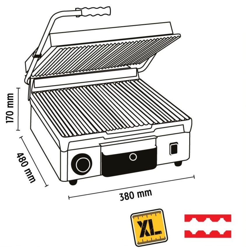 Επαγγελματική τοστιέρα μαντεμένια , με δομή από ανοξείδωτο χάλυβα και αντικολλητικές πλάκες από χυτοσίδηρο, κατασκευασμένη με ειδική επιφανειακή κεραμική επίστρωση που κάνει τις πλάκες ιδιαίτερα ανθεκτικές στα οξέα, το αλάτι και τη διάβρωση, ενώ επιτρέπει τον εύκολο και γρήγορο καθαρισμό.