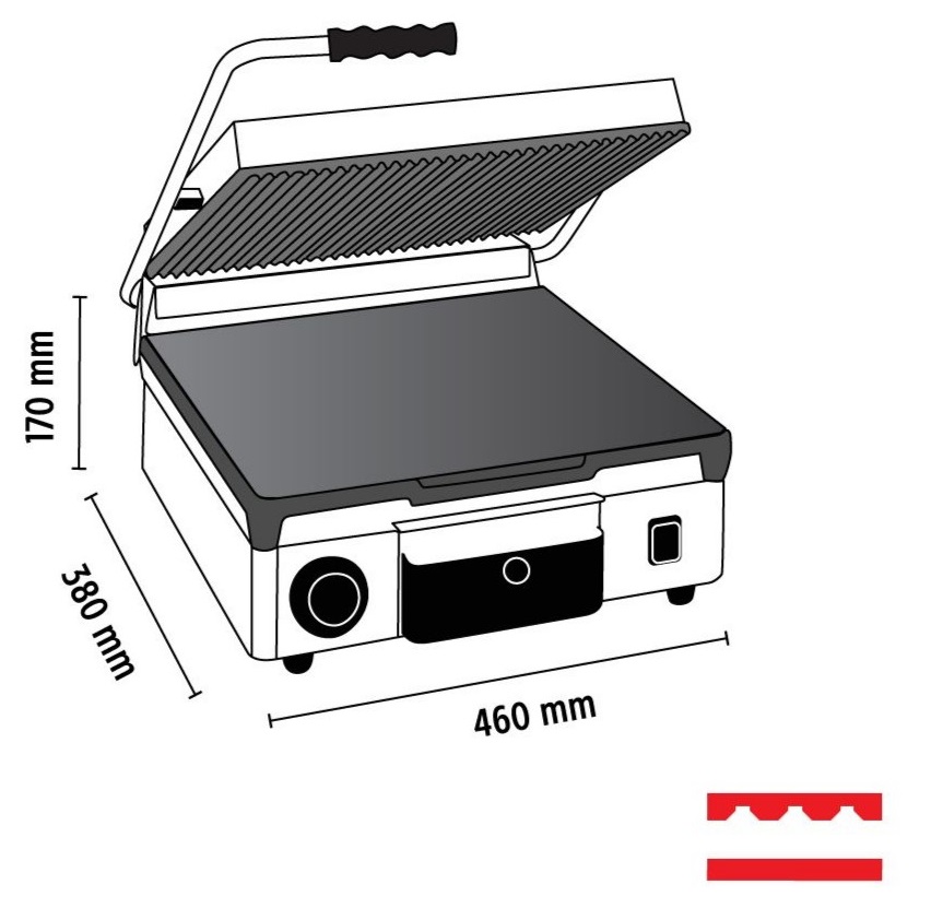 MILANTOAST 16031 Μονή Τοστιέρα Επαφής από Χυτοσίδηρο, Ραβδωτή Πάνω & Λεία Κάτω (S/R)