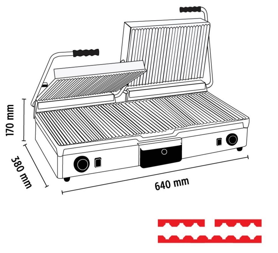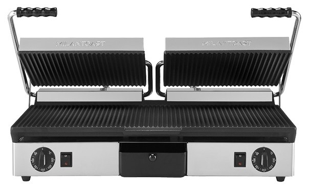 MILANTOAST 16050 Διπλή Τοστιέρα Επαφής από Χυτοσίδηρο, Ραβδωτή Πάνω & Κάτω (R+R/R+R)