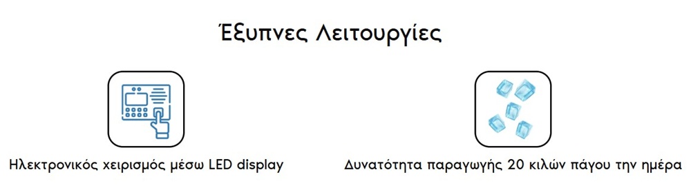 • Δυνατότητα επιλογής μεταξύ 2 μεγεθών πάγου