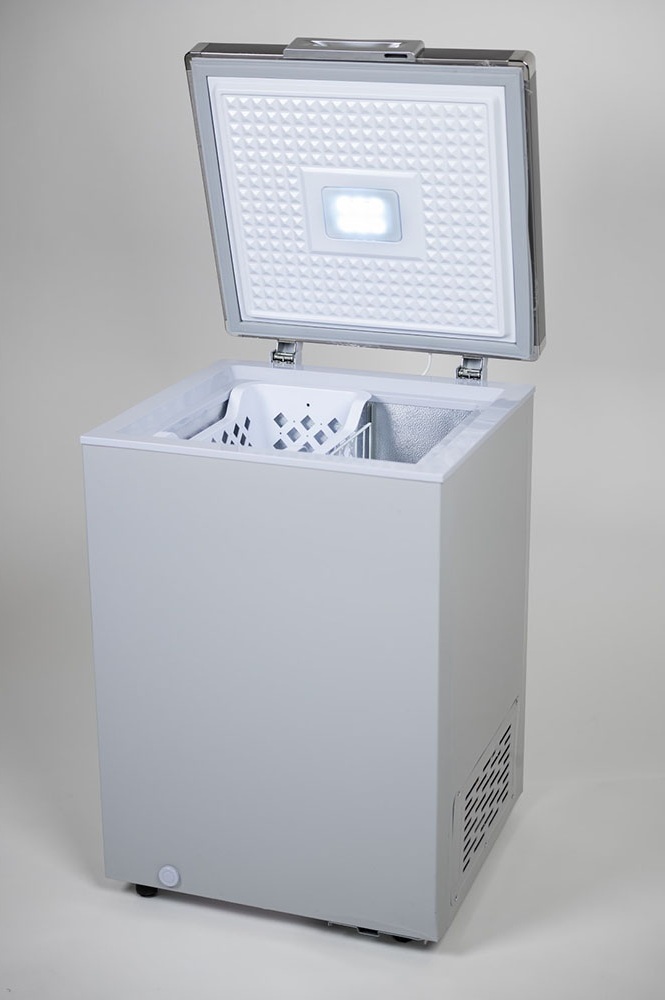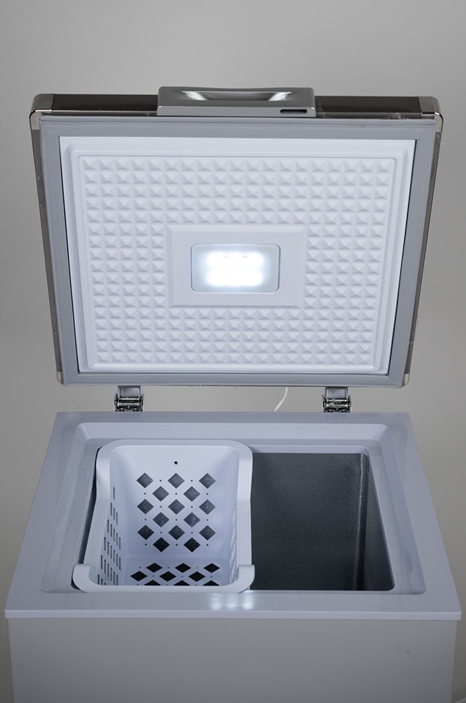 Καταψύκτης μπαούλο διπλής λειτουργίας, ενεργειακής κλάσης D με καθαρή χωρητικότητα 93 λίτρα. Έχει την δυνατότητα ρύθμισης της θερμοκρασίας από -26°C έως -14°C και από 0°C έως 10°C. Διαθέτει λειτουργία ταχείας κατάψυξης και εσωτερικά τοιχώματα αλουμινίου.