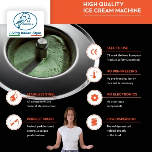 • Τέλεια κατάψυξη: Η σπάτουλα από ανοξείδωτο ατσάλι αποτρέπει το σχηματισμό σβόλων και κρυστάλλων πάγου, ενώ η περιστροφή 76 στροφών ανά λεπτό ενσωματώνει τη σωστή ποσότητα αέρα.