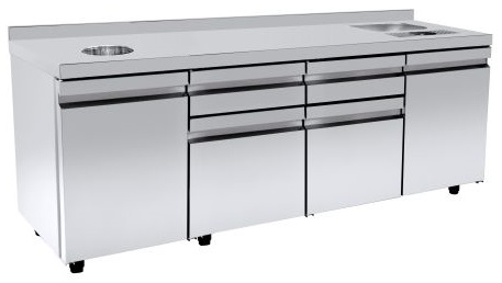 Niki Inox CS NE 179 Coffee Station Ουδέτερο με 1 Οικιακή Γούρνα, Συρταριέρα Καφέ, Rinser, 3 GN Πόρτες και 1 Αμπάρι με Ρόδες, 1790 mm