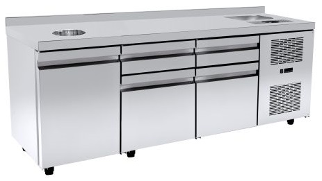 Niki Inox CS RE 179M Coffee Station Ψυχώμενο με 1 Οικιακή Γούρνα, Συρταριέρα Καφέ, Rinser, 2 GN Πόρτες, 1 Αμπάρι με Ρόδες, 1790 mm