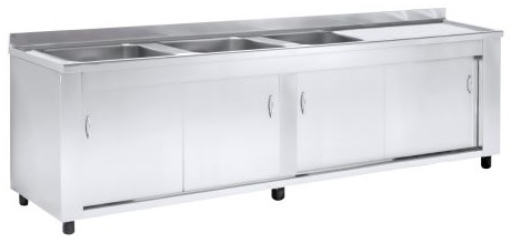 Niki Inox LK 3G 210 Λάντζα Κλειστή με 3 Γούρνες και 4 Συρόμενες Πόρτες