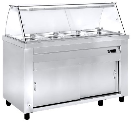 Niki Inox MM 80 140G Μπαιν-μαρί Θερμαινόμενη Βιτρίνα Προβολής με Λάμπες Αλογόνου και 2 Συρόμενες Πόρτες, για 4 Λεκανάκια GN 1/1, 1390 mm