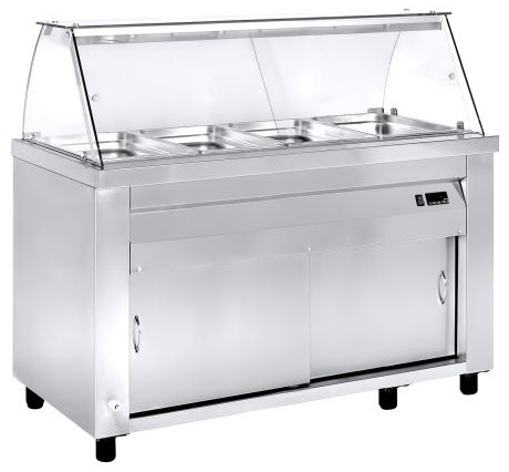 Niki Inox MM ED 140G Μπαιν-μαρί Θερμαινόμενη Βιτρίνα Προβολής με Λάμπες Αλογόνου και 2 Συρόμενες Πόρτες, για 4 Λεκανάκια GN 1/1, 1390 mm