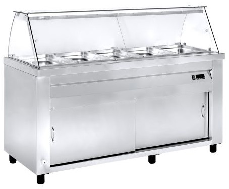 Niki Inox MM ED 172G Μπαιν-μαρί Θερμαινόμενη Βιτρίνα Προβολής με Λάμπες Αλογόνου και 2 Συρόμενες Πόρτες, για 5 Λεκανάκια GN 1/1, 1720 mm