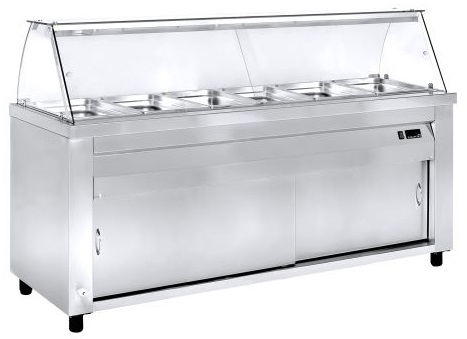 Niki Inox MM ED 204G Μπαιν-μαρί Θερμαινόμενη Βιτρίνα Προβολής με Λάμπες Αλογόνου και 2 Συρόμενες Πόρτες, για 6 Λεκανάκια GN 1/1, 2040 mm