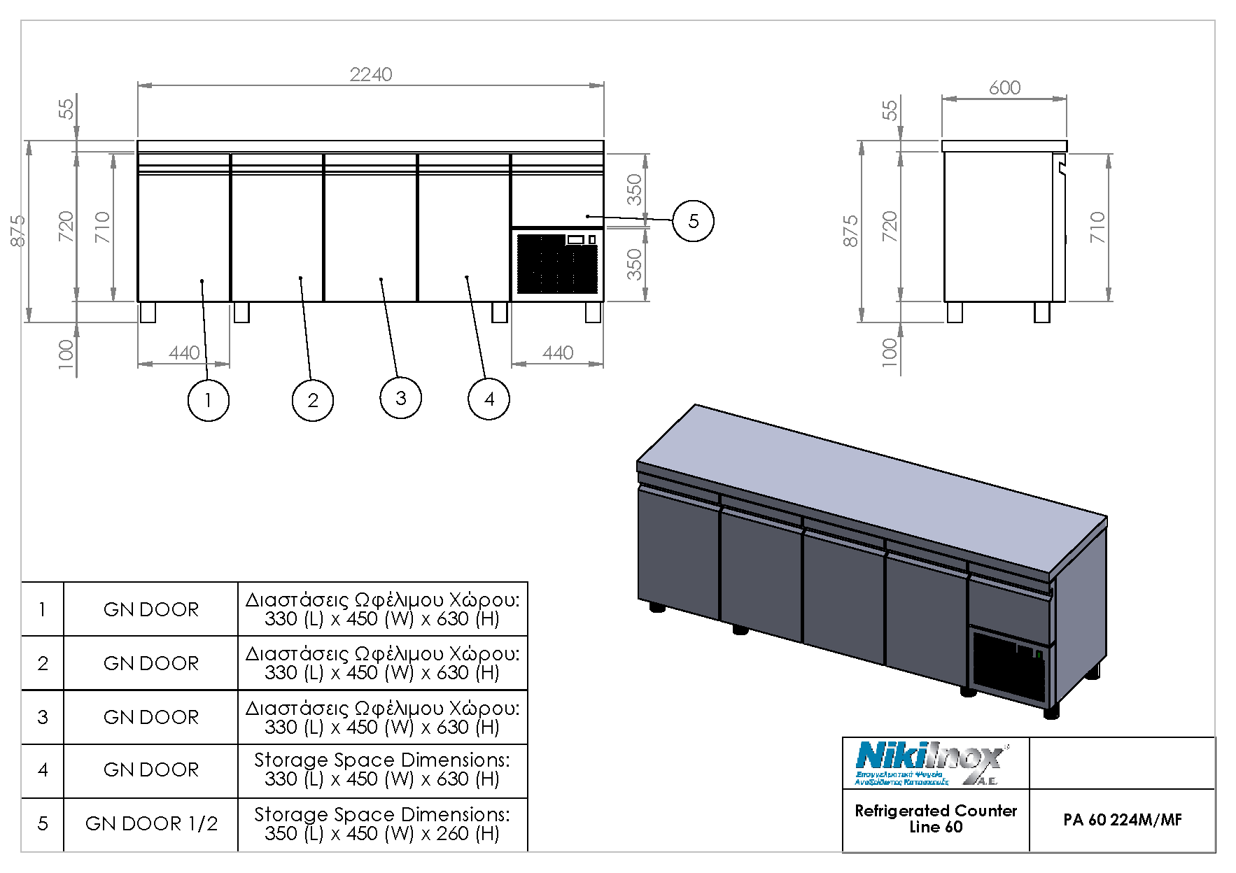 Σειρά 60 Niki Inox PA 60 224M Πάγκος Συντήρησης, 570 lt