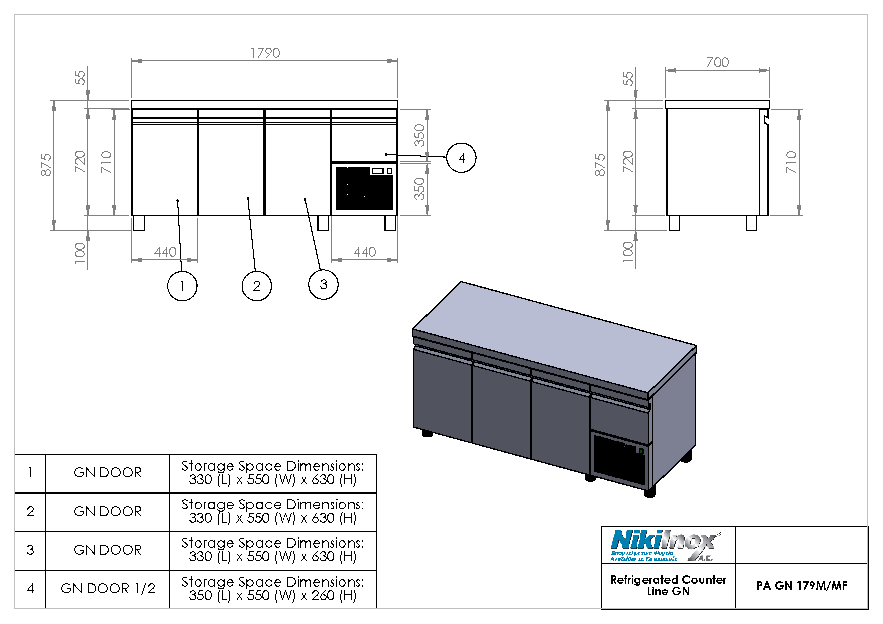 Σειρά GN Niki Inox PA GN 179M Πάγκος Συντήρησης, 550 lt