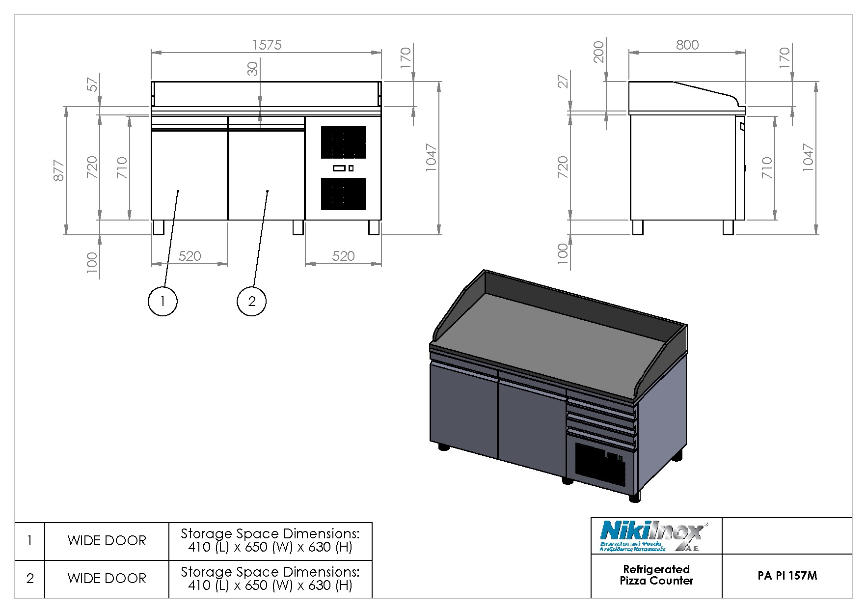 Εξωτερικές Διαστάσεις (Π x Β x Υ): 1570x800x1100 mm