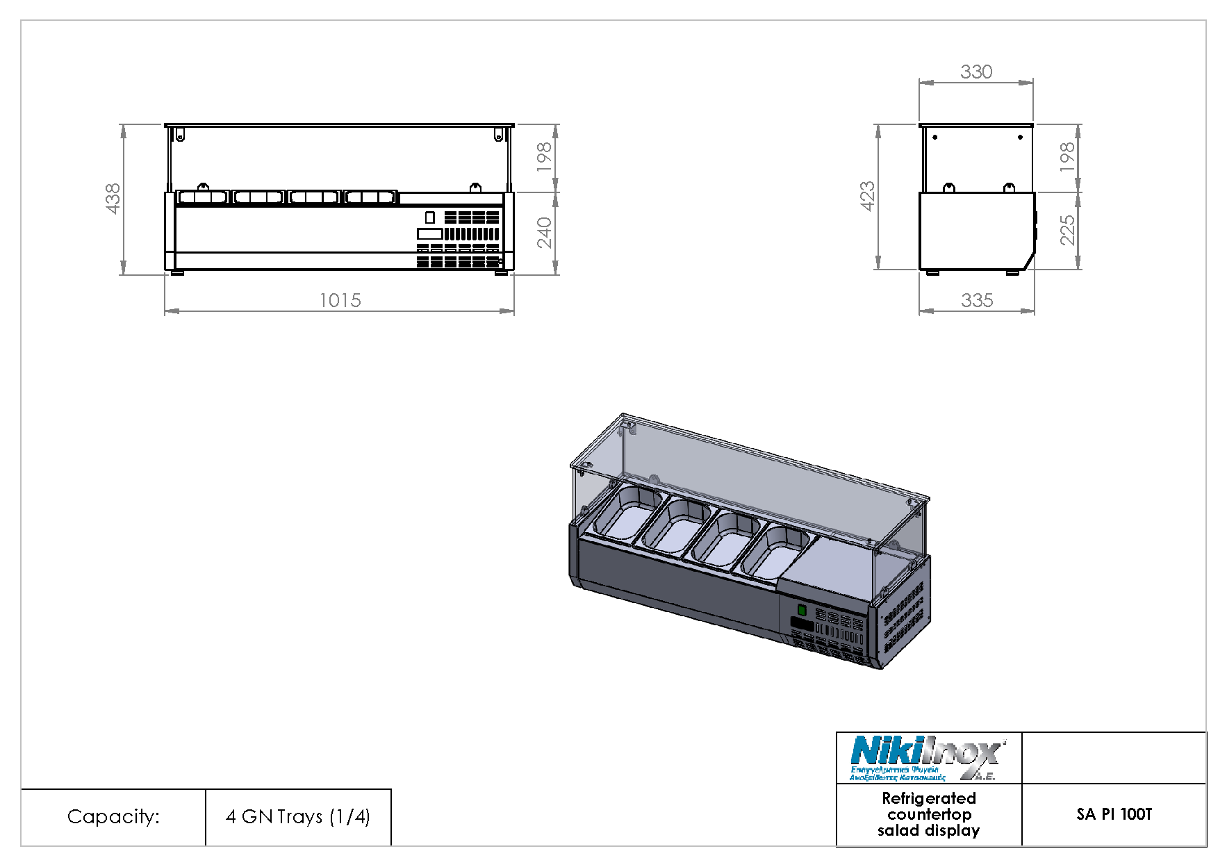 Niki Inox SA PI 108T Επιτραπέζια Βιτρίνα Σαλατών για 4 Λεκανάκια GN 1/4