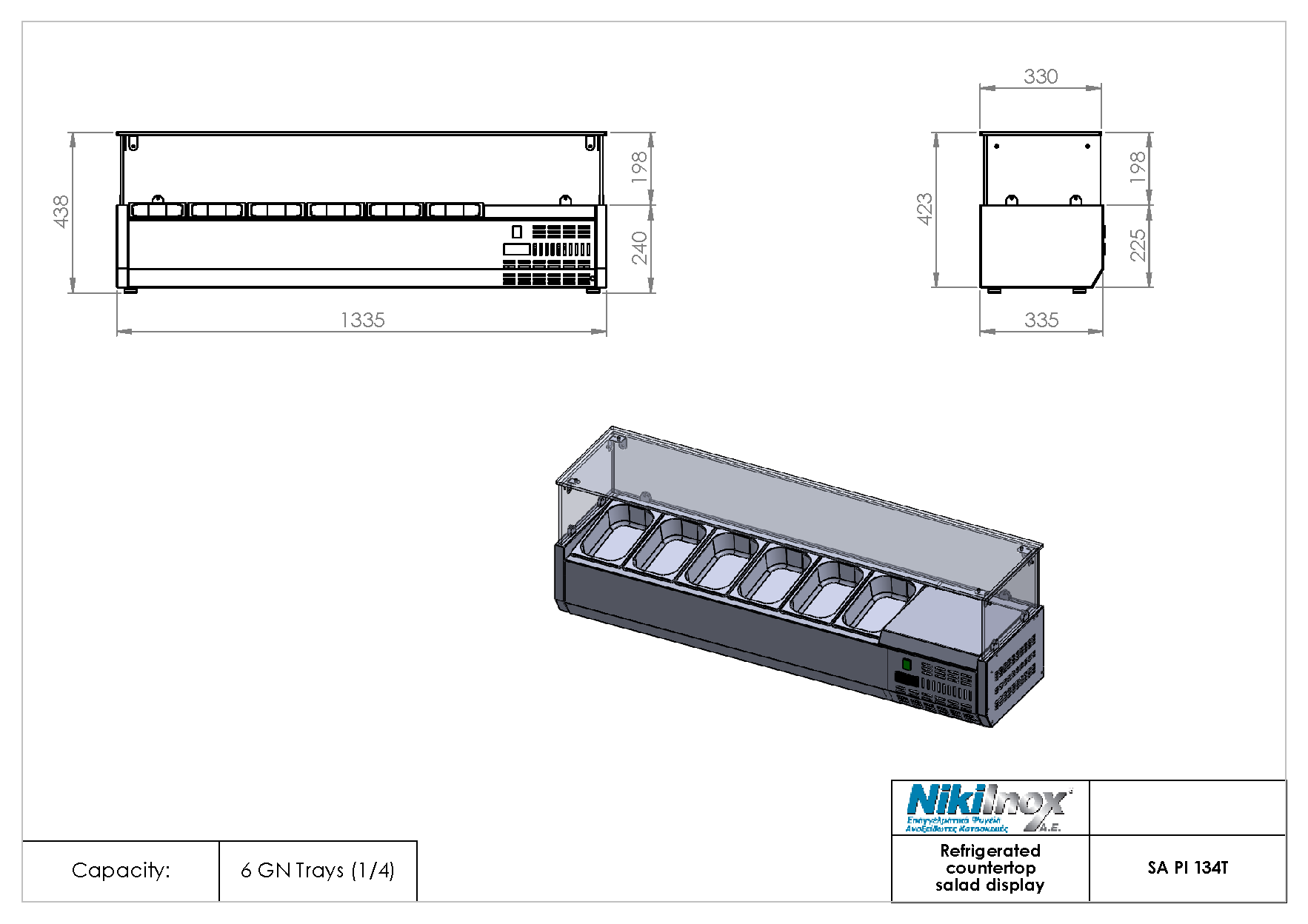Niki Inox SA PI 134T Επιτραπέζια Βιτρίνα Σαλατών για 6 Λεκανάκια GN 1/4