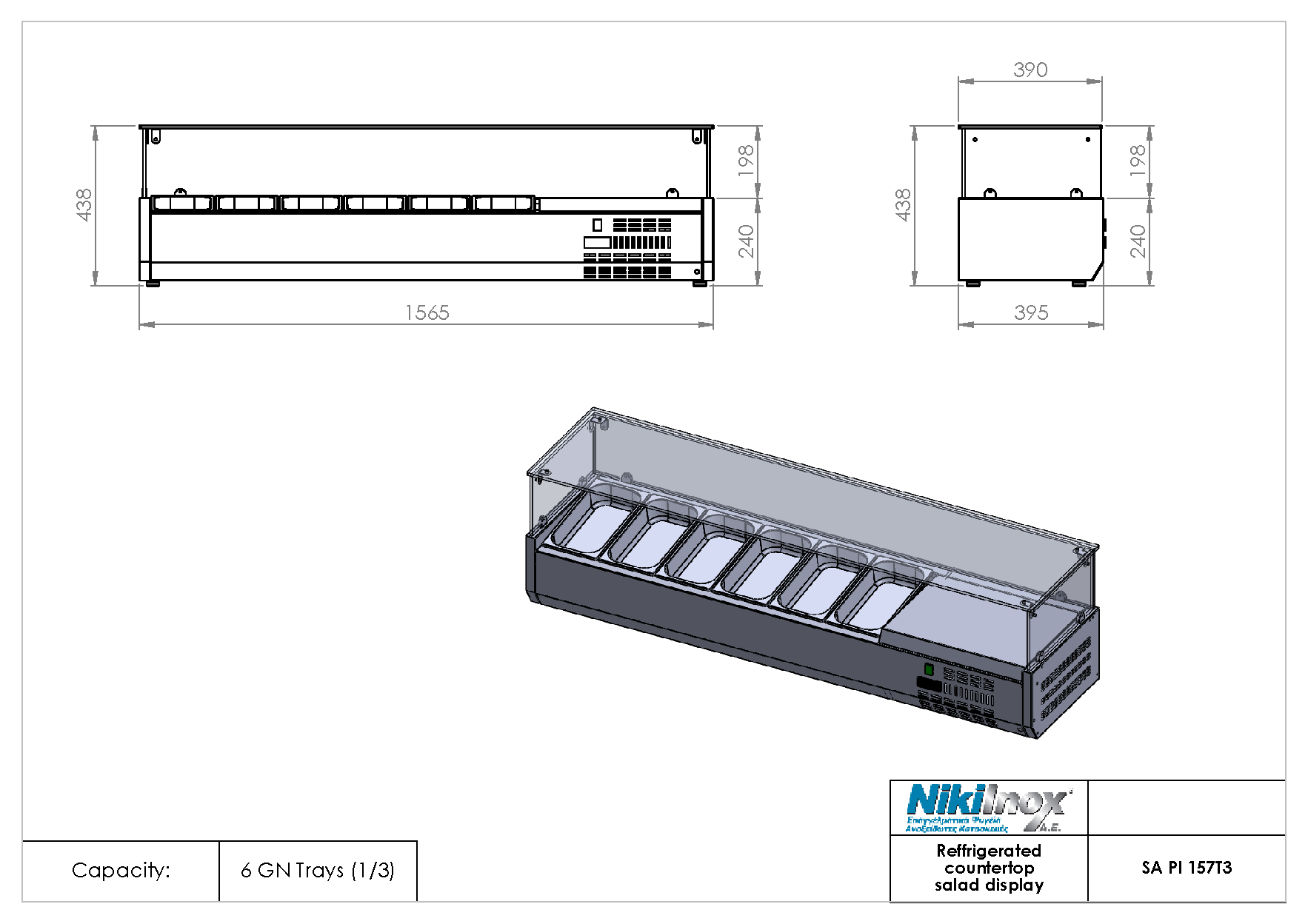 Niki Inox SA PI 157T3 Επιτραπέζια Βιτρίνα Σαλατών για 6 Λεκανάκια GN 1/3