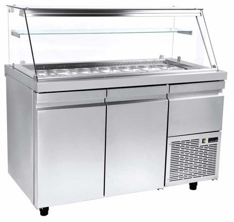 Niki Inox VI XA 157M Ψυγείο-Βιτρίνα Σαλατών με Αέρα και με Φαρδιές Πόρτες, για 18 Λεκανάκια GN 1/4, 520 lt