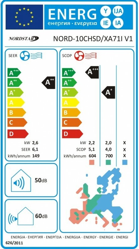 TN NORDSTAR NORD-10CHSD/XA71l V1 Κλιματιστικό Τοίχου Inverter 10.500 BTU/h, A++/A+