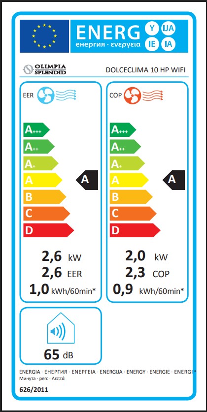 Ονομαστικός Δείκτης Ενεργειακής Απόδοσης EERd: 2,6